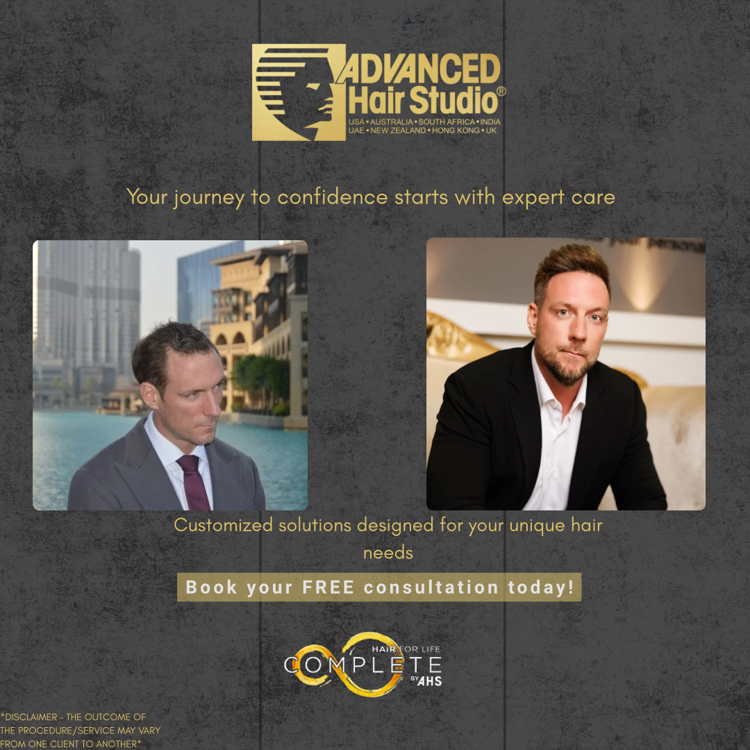 AHS Complete® by Advanced Hair Studio is a comprehensive hair loss treatment in Dubai, combining the best of both surgical hair restoration (hair transplant) and advanced non-surgical techniques. Created for individuals facing advanced stages of thinning or baldness, it is tailored to personal needs and lifestyle goals. This all-in-one approach helps restore density, volume, and a natural-looking hairline, delivering the transformation of a full head of hair. With no compromises, AHS Complete® oDers a powerful solution for challenging hair loss conditions.
